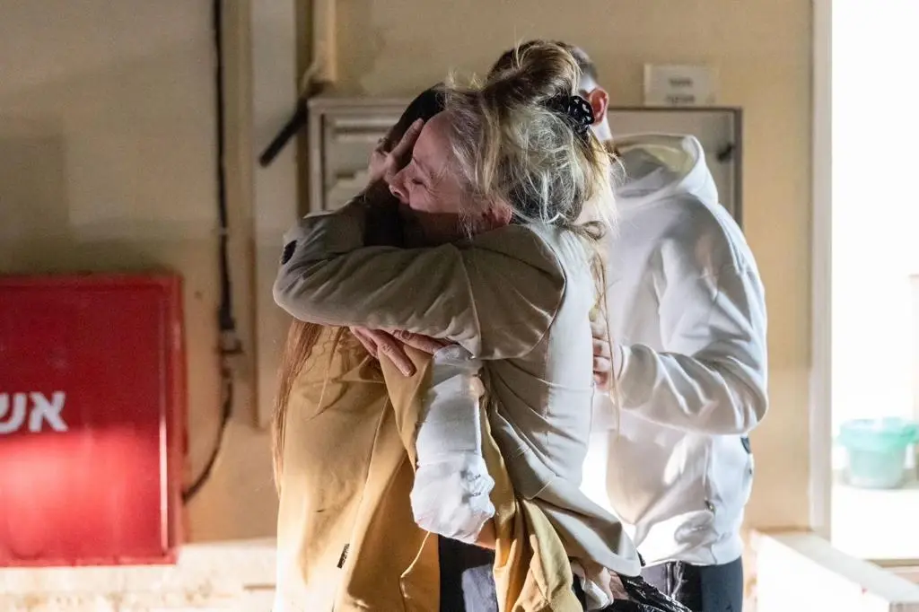 pierwsze zwolnione dzisiaj, mia shemesh, 21, porwana z festiwalu nova i amit sosna, 40, porwana w kfar aza, juz sa w bazie hatzerim w israelu...