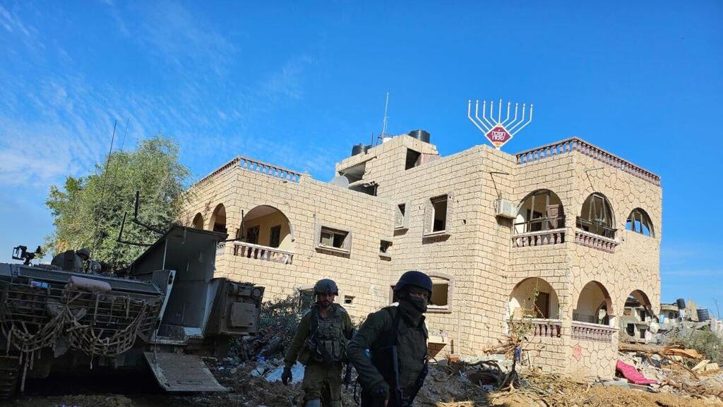 za tydzien pierwsza swieczka chanukowa... na budynku w jednej z dzielnic gazy, gdzie dzialaja sily cahalu, umieszczona ogromna chanukiye...