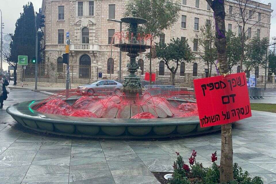 aktywistki ruchu 'jednostka do walki z terrorem plciowym' zabarwila na czerwono wode w fontannie na placu paryskim w jerozolimie kolo rezydencji premiera na balfour wzywajac do uwolnienia porwanych: 'przelano dosyc krwi. premier torpeduje rzadkie szanse na powrot porwanych, kazdy dzien, w ktorym nie realizuje sie porozumienia, zmniejsza szanse na przywrocenie ich zywymi. zadamy, zeby premier przestal faworyzowac ben gvira i calosc koalicji ponad ratowanie zycia i powrot porwanych'...